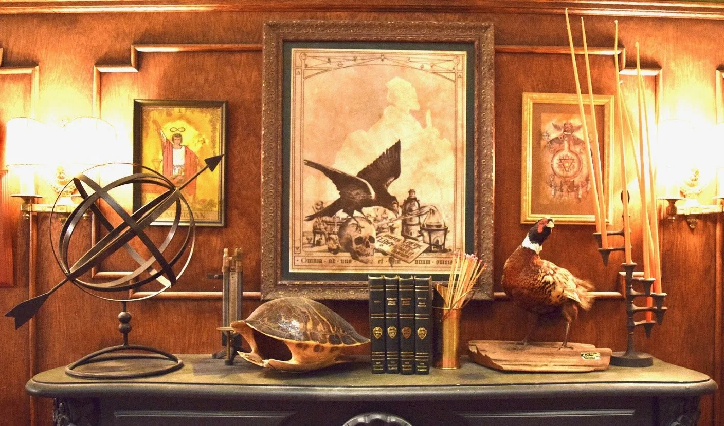 Bird and skull print framed in secret library